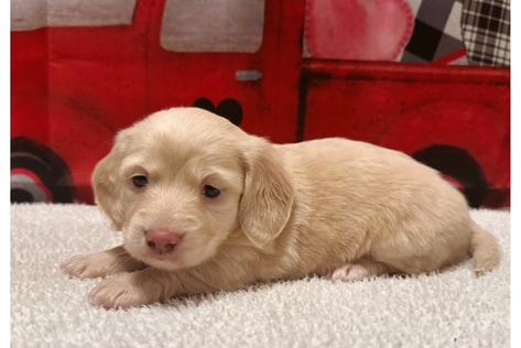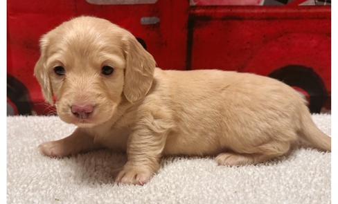 December 17, 2025. Sire: English Cream, Longhaired. Dam: English Cream, Longhaired. Litter consists of : 1-Chocolate & Cream Dapple Female $2400 & 1-English Cream Male $2000. Taking Deposits now! Puppies will be ready for new homes on February 14th.